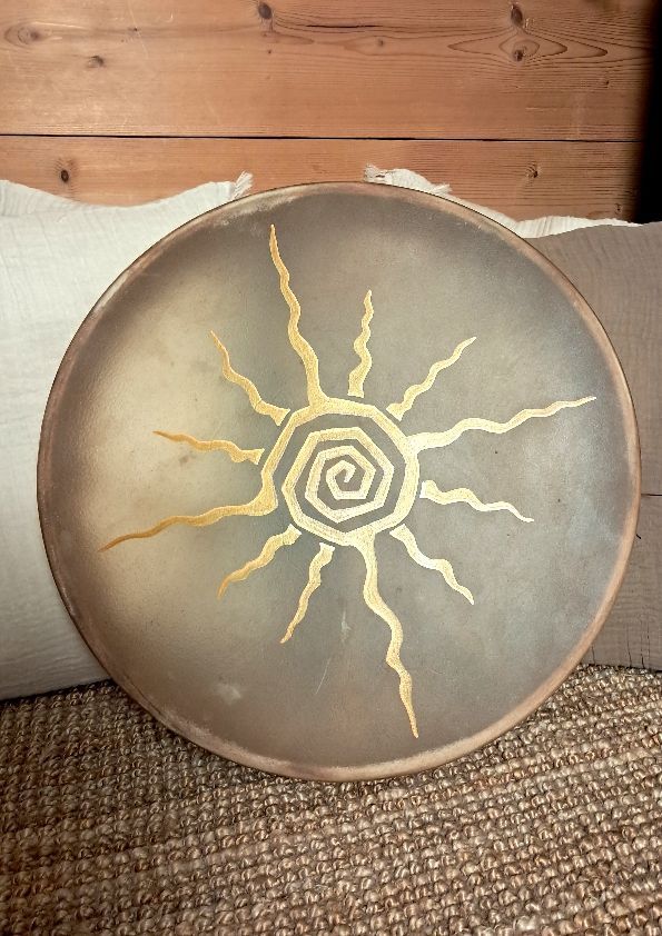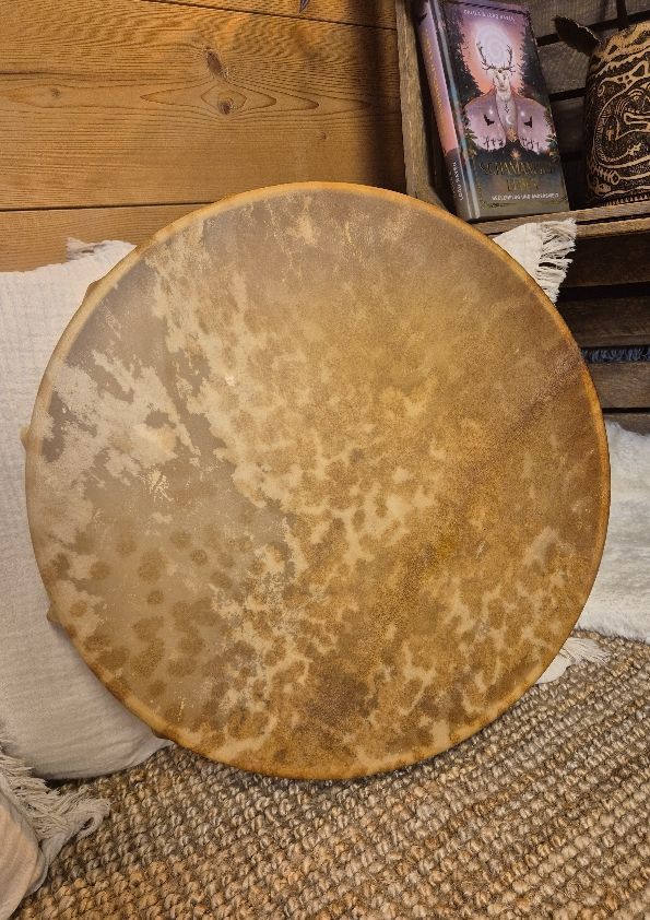45cm Durchmesser, Ziege. Sie versprüht Ruhe und Sanftheit, trotz tiefem Ton :)